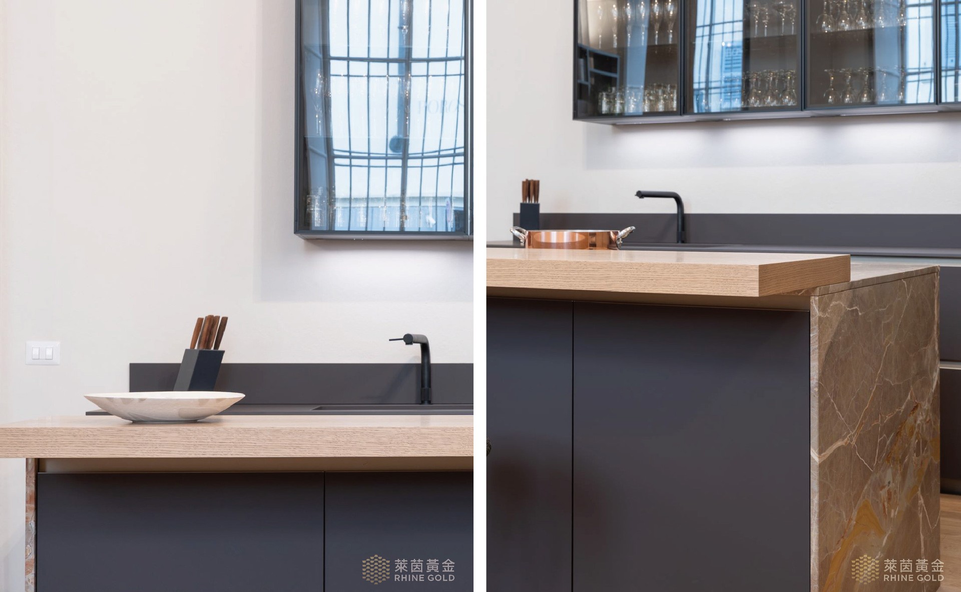 無論用於櫃體、檯面或吊櫃,都讓空間沉穩迷人。
